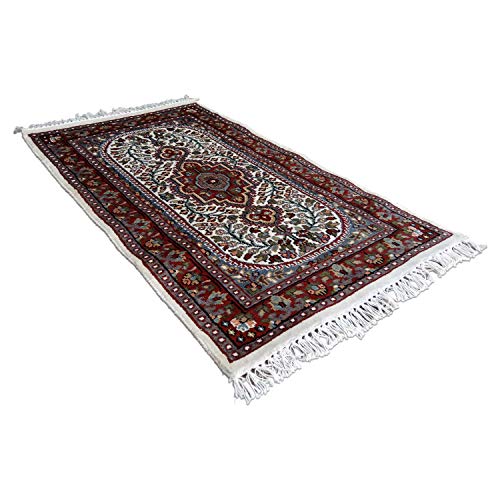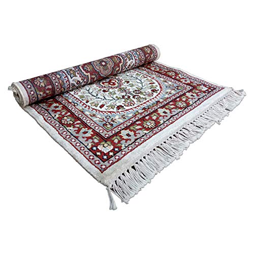 Specificaties: Amma Carpets Handgeknoopt Perzische kunst zijden tapijt 2×3 voet wit luxe traditioneel handgemaakt magisch tapijt