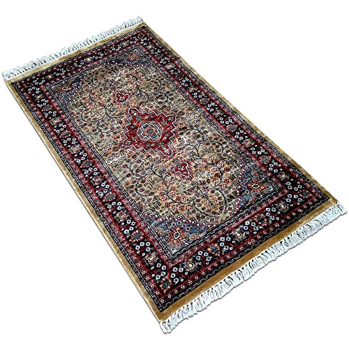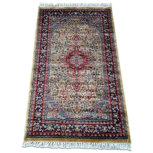 3x4ft handgeknoopt kunst zijde tapijt perzische multicolor premium kwaliteit voor uw huis slaapkamer of elke kamer handgemaakt door ambachtslieden van India. Puur hoogwaardig materiaal. Geeft traditionele en luxe uitstraling aan uw huis.