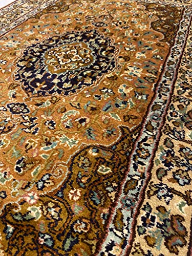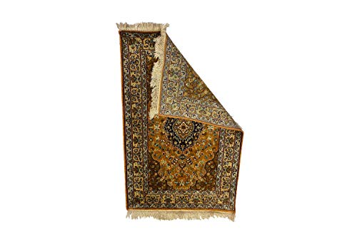 Dit is het handgeknoopte zijden tapijt met Indo-Perzisch design. De afmeting van het tapijt is 2×3 voet, de principiële kleuren zijn goud samen met kameelbruin aan de randen en goud in het midden met een bloemmotief. Deze tapijten zijn volledig met de hand gemaakt op het weefgetouw die samen met het materiaal aan de families in de dorpen worden verstrekt. Om de grootte van de 2X3 voet te voltooien duurt ongeveer 6 maanden om te voltooien, na de voltooiing van het tapijt zijn er verschillende andere processen zoals de achterkant van de tapijten om het extra materiaal voor de kwaliteitscontrole te verwijderen, dan wordt het verzonden voor het wassen om stof te verwijderen en het materiaal te verzachten en het wordt 3-4 dagen in de zon gedroogd. Nadat het tapijt is gedroogd, wordt het verzonden voor het knippen van wat 4-5 keer wordt gedaan om het ontwerp er nauwkeuriger en duidelijker uit te laten zien. Tot slot is het tapijt klaar voor verkoop en om door u bewonderd te worden. Reinigingsinstructies: – -Om de tapijten schoon te maken, kan het dagelijks worden gestofzuigd -Wanneer een vlek van thee, koffie of andere vloeistof op de tapijten kan worden verwijderd door een paar druppels citroensap, gevolgd door een milde wasbeurt van zeep of shampoo
