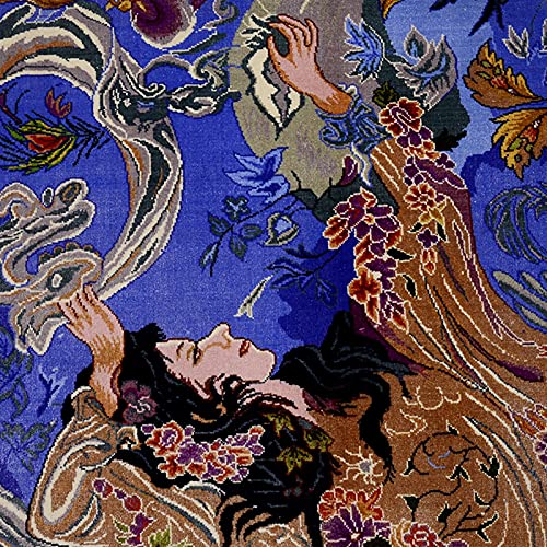 Specificaties: RUG 3×4.5ft handgemaakte zijde tapijt met Perzisch klassiek myth-verhaal patroon in paars voor studie of woonkamer Ouzyu…