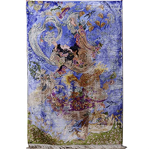 RUG 3×4.5ft handgemaakte zijde tapijt met Perzisch klassiek myth-verhaal patroon in paars voor studie of woonkamer Ouzyu…